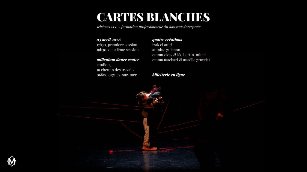 Découvrez l’aboutissement d’un processus créatif intense mené par les élèves de la formation. Pour cette édition des Cartes Blanches, le studio devient un laboratoire d’expression à travers des pièces contemporaines inédites. Ce spectacle est le fruit de plusieurs semaines de recherche. Venez soutenir ces futurs professionnels et plonger dans leurs univers respectifs lors de cette soirée dédiée à la création émergente et laissez-vous surprendre par leurs univers.